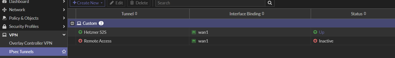 1. Log into your FortiGate and go to "VPN" - "IPsec Tunnels"