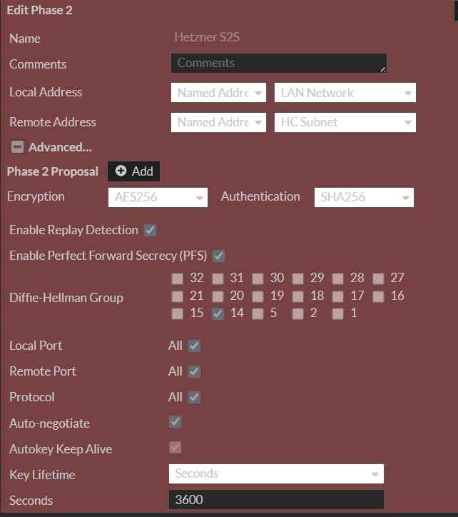 2. Open your Tunnel Settings and go to "Phase 2 Selectors"