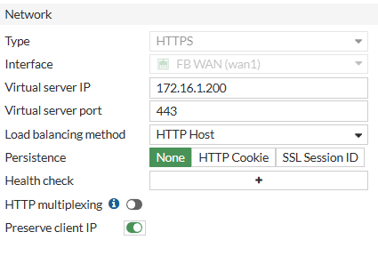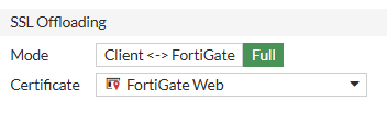 As the FortiGate will be acting as Reverse Proxy in this Situation, SSL Encryption needs to be done at the Firewall. Select/Upload your SSL Certificate here and Set Mode to Full
