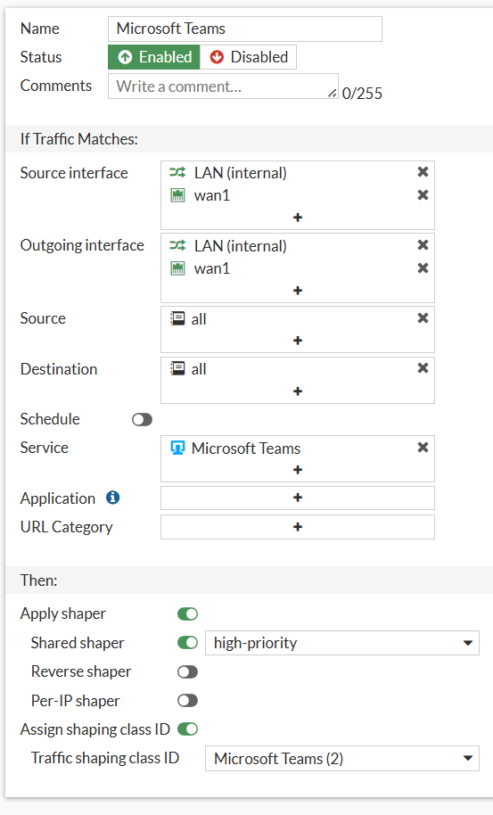 Create a Traffic Shaping Policy for this Service. Assign your necessary Interfaces and the created Service